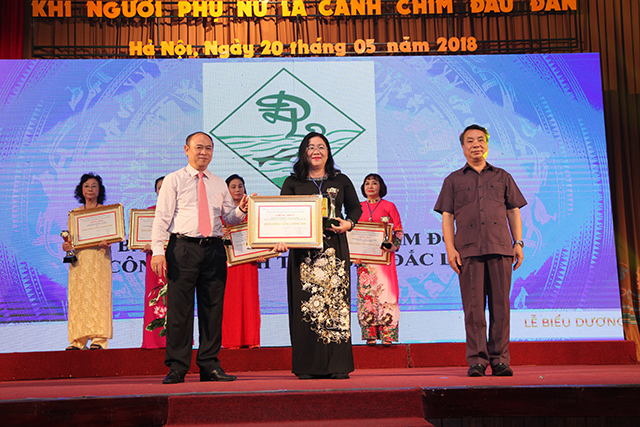 Giám đốc Nguyễn Thị Nga tự hào khi nhận giải thưởng |