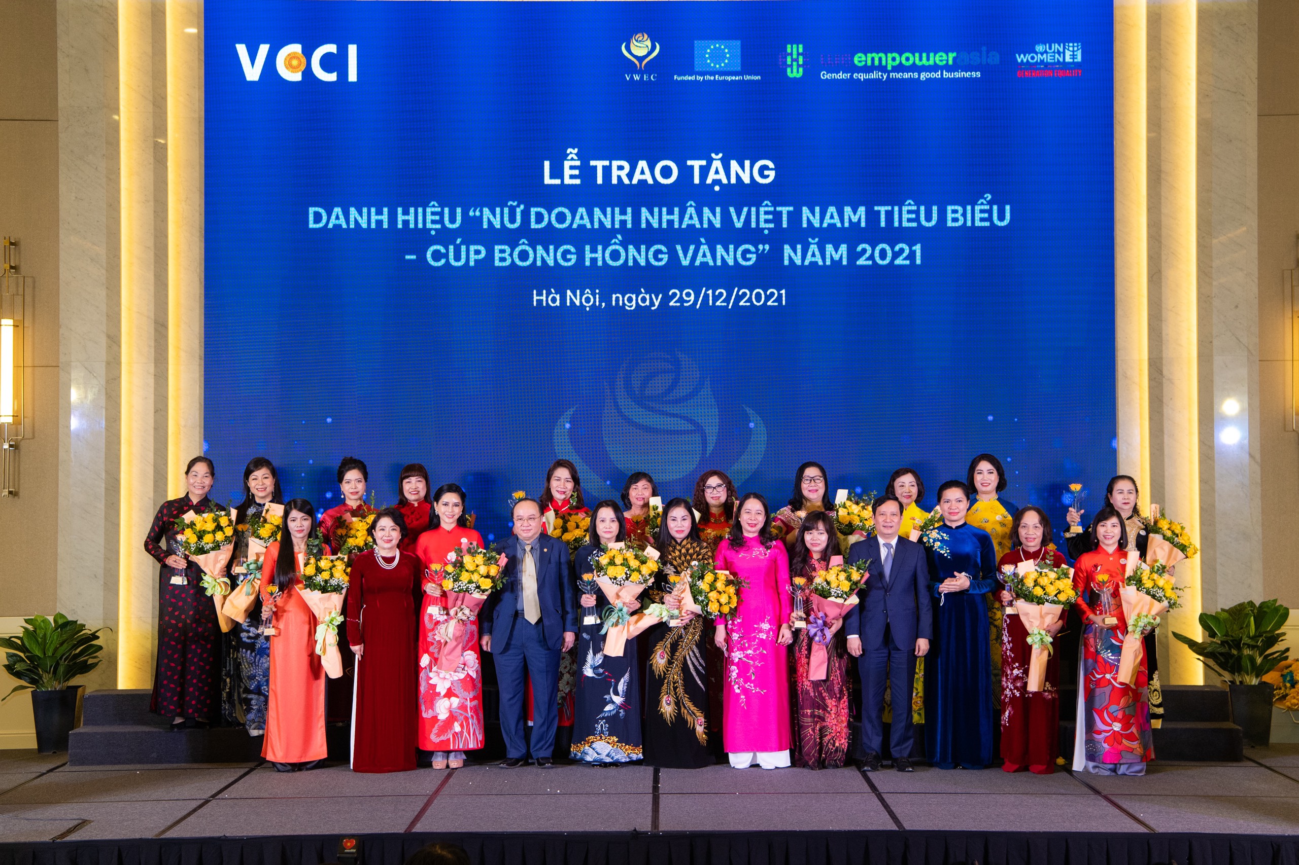 Danh hiệu “Nữ doanh nhân Việt Nam tiêu biểu – Cúp Bông Hồng Vàng” đã được trao tặng cho 60 nữ doanh nhân tiêu biểu trong năm 2021.
