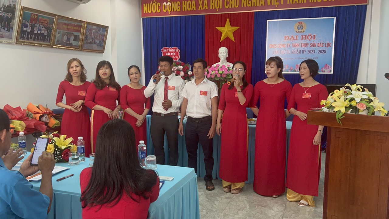 Ngày 18/3/2023 Công đoàn Công ty TNHH Thủy sản Đắc Lộc đã tiến hành tổ chức Đại hội CĐCS Công ty TNHH Thủy sản Đắc Lộc nhiệm kỳ 2023-2028 nhằm đánh giá kết quả hoạt động của Công đoàn cơ sở trong thời gian qua và định hướng nhiệm vụ trong thời gian tới; bầu ra BCH CĐCS nhiệm kỳ 2023 - 2028, bầu đoàn đại biểu dự Đại hội CĐ cấp trên. Đại hội rất vui mừng được chào đón các đồng chí Đại biểu về dự Đại hội: