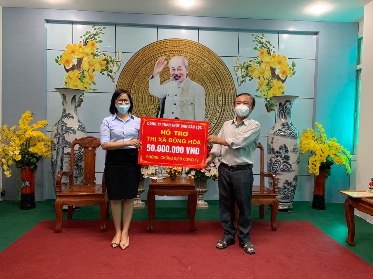Với tinh thần đoàn kết, tương thân tương ái, đồng lòng cùng tham gia phòngchống dịch, ngày 06/7/2021 Công ty TNHH Thủy sản Đắc Lộc đã trao 100 triệu đồng cho UBND thành phố Tuy Hòa vào Quỹ phòng chống dịch Covid-19, chia sẻ khó khăn cùng thành phố Tuy Hoà trong bối cảnh dịch bệnh Covid-19 đang diễn biến phức tạp.